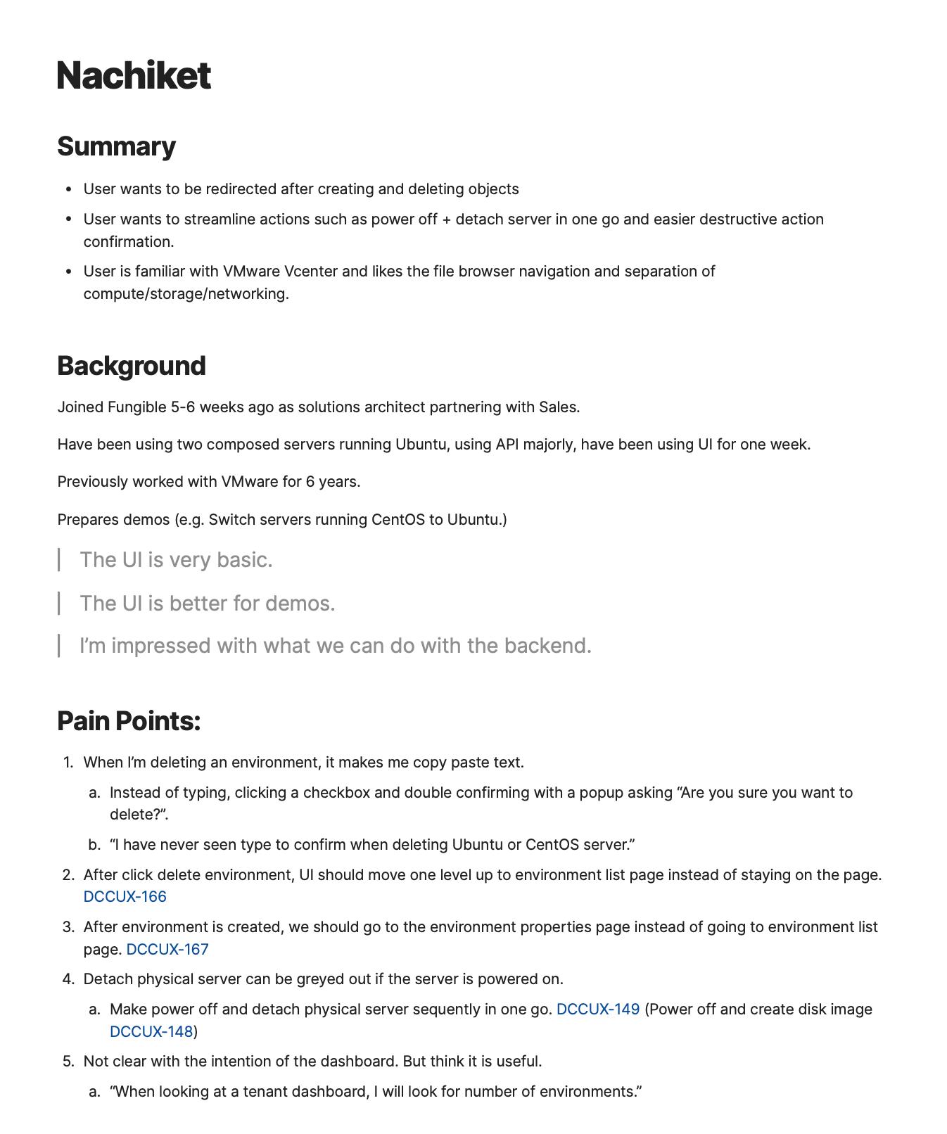 To address this, I conducted interviews with two engineers to gather their insights on the environment. Additionally, I received feedback from an interview conducted by other UX team members with one of our customers.