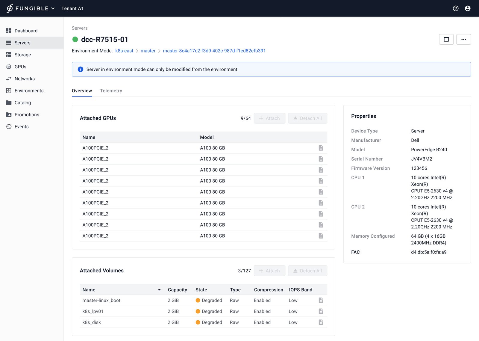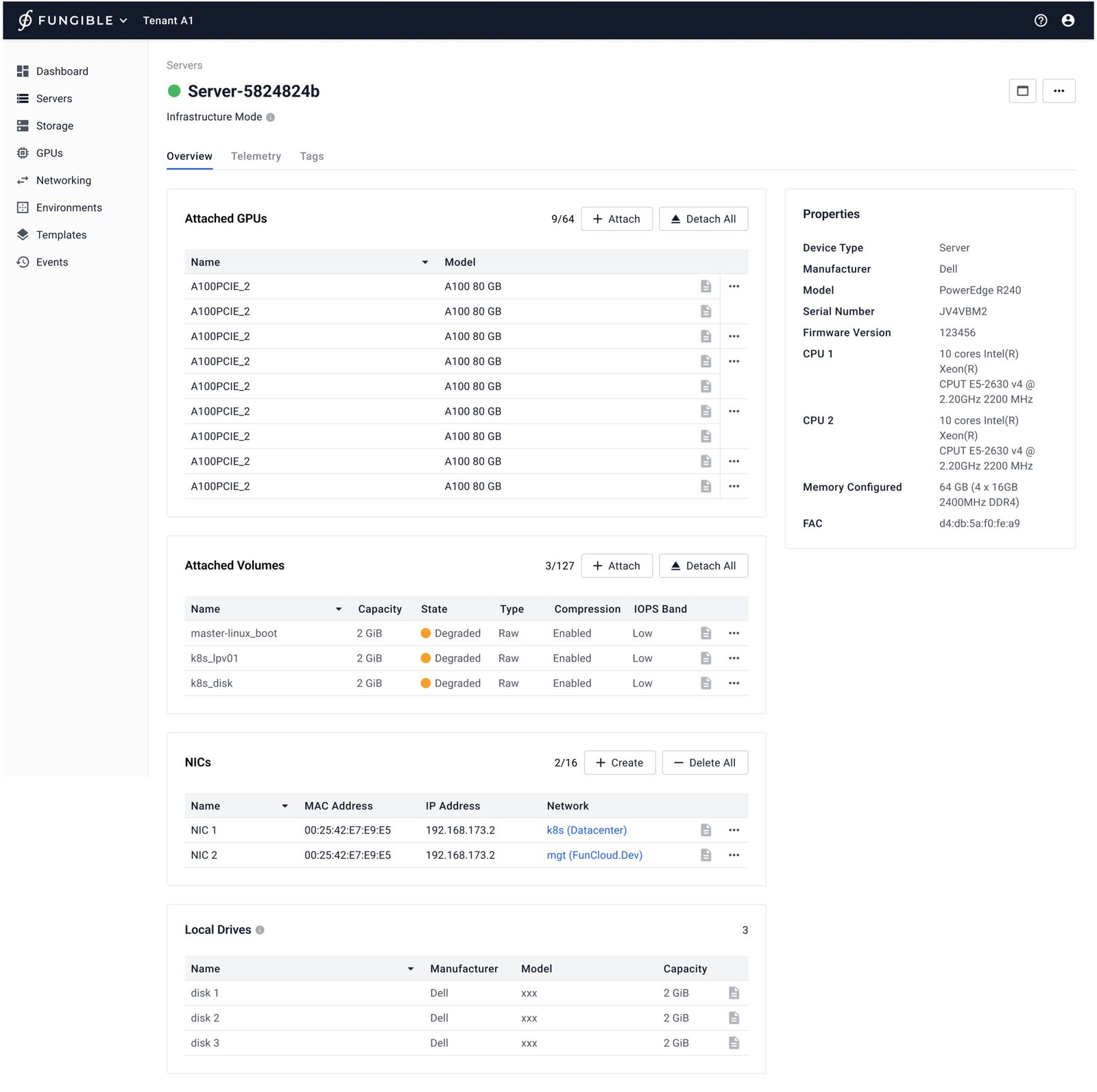 A Managed Service Provider (MSP) or Cloud Service Provider (CSP) acquires the full Fungible Data Center solution. The DCA provides proactive monitoring, maintenance over hardware inventory and management of resource allocation.