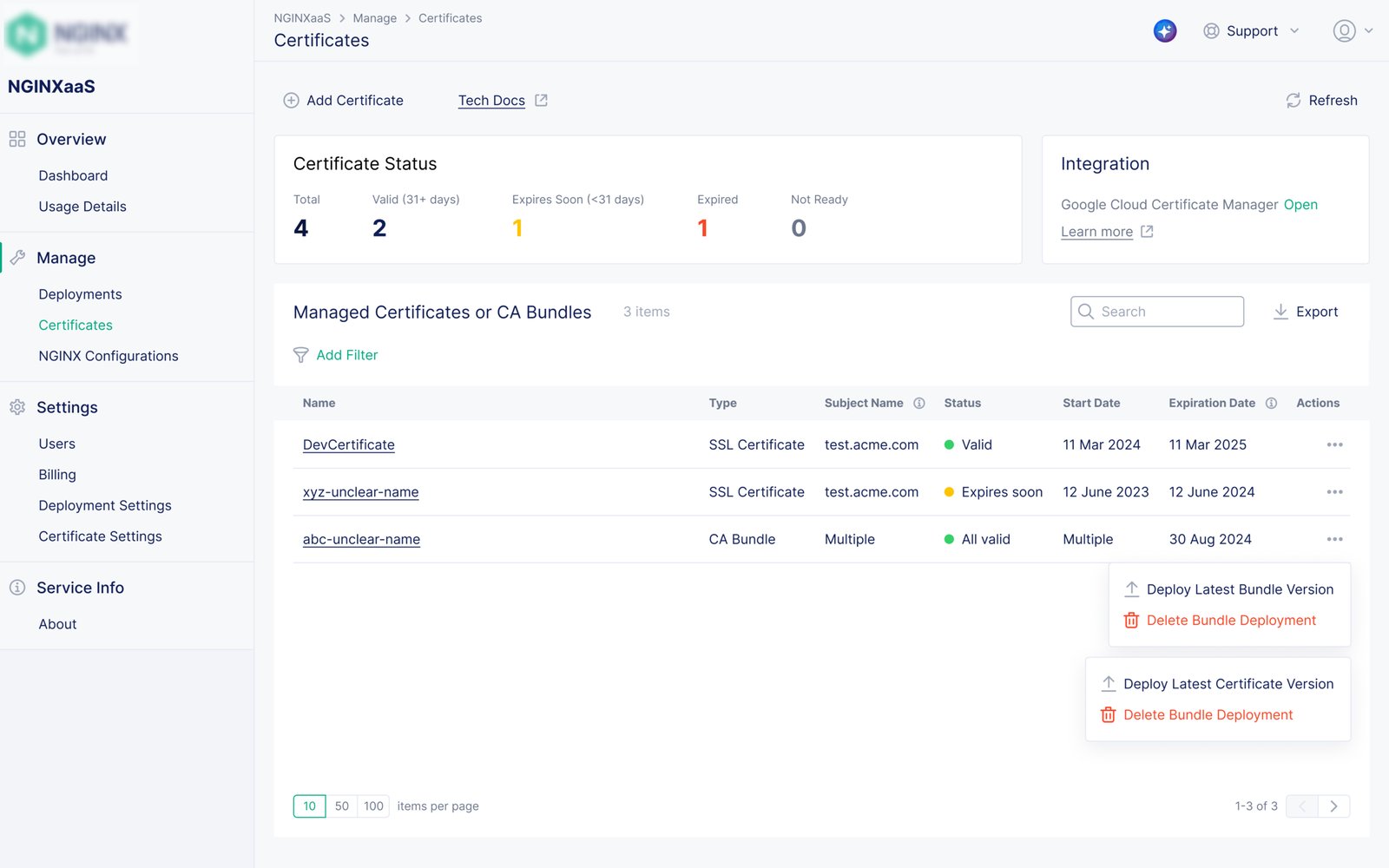 NGINX Certificates