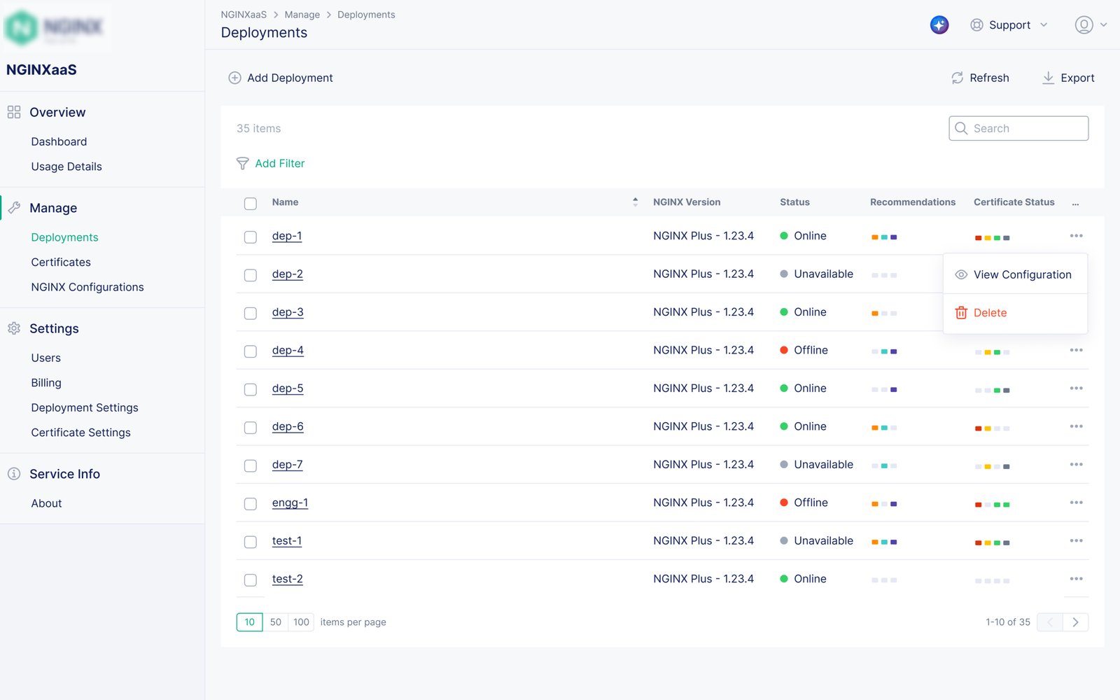 • Managed configuration and security certificates of NGINX deployments