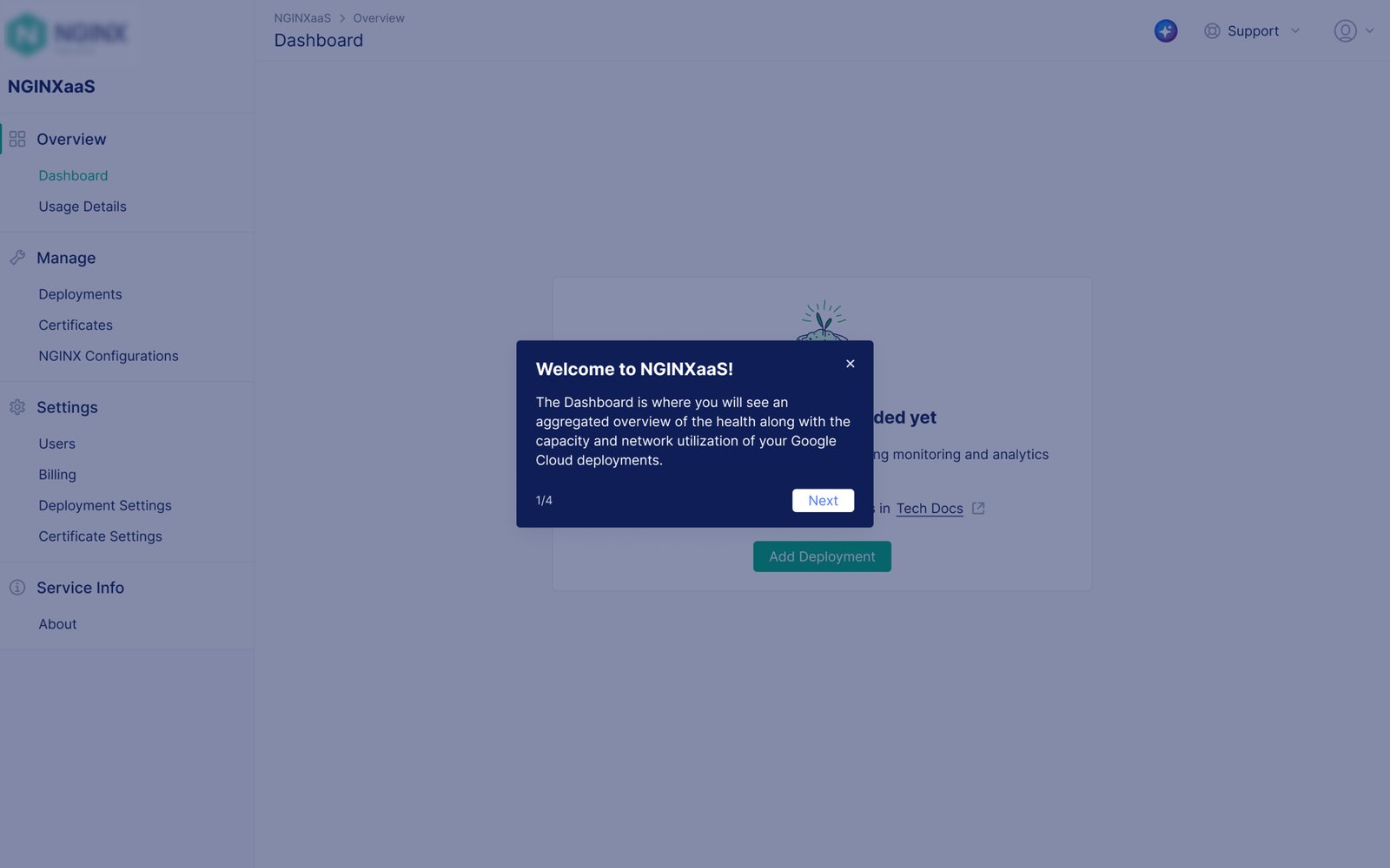 NGINXaaS for GCP is a standalone NGINX suite that centralizes management of NGINX instances across locations and environments. From a single console, teams can configure services, manage SSL certificates, monitor performance, and address security issues without manual infrastructure work.